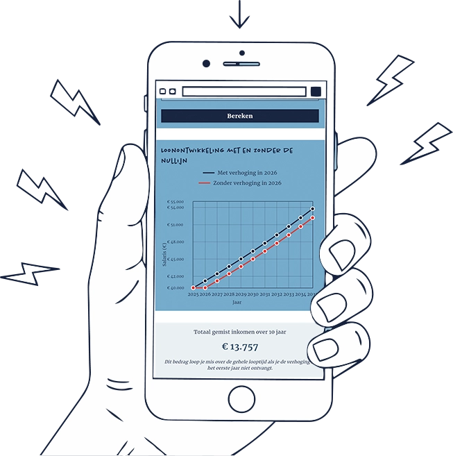 Om dat helder te maken hebben we een eenvoudige rekentool ontwikkeld. Vul de variabelen in en zie meteen hoeveel salarisontwikkeling je misloopt door de nullijn.